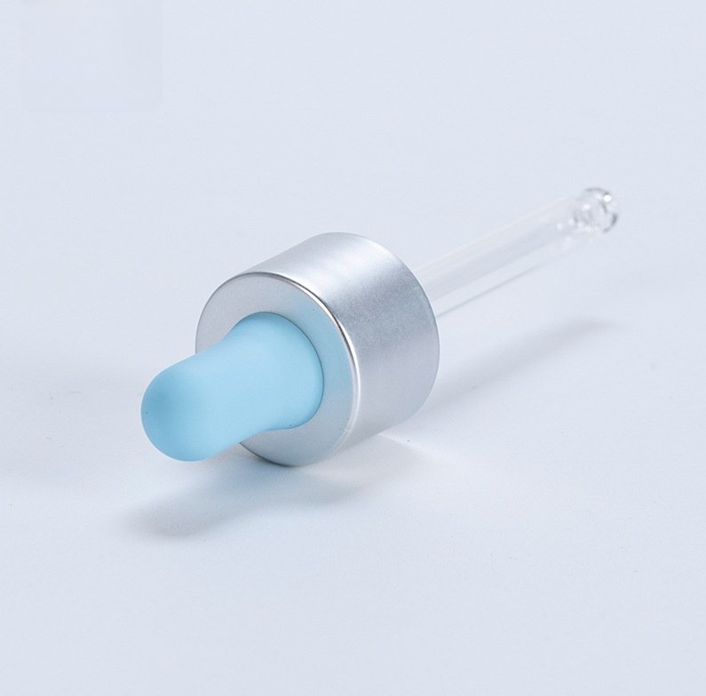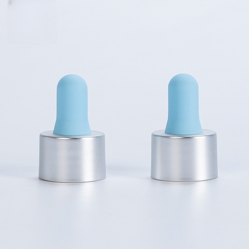 20-410 electroplated matte silver plastic cap with a silicone head and a colorful dropper